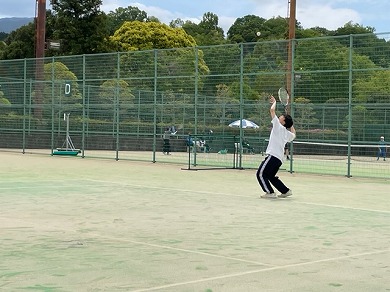 | 試合風景① カッコイイフォーム! | 試合風景② バックハンド! |